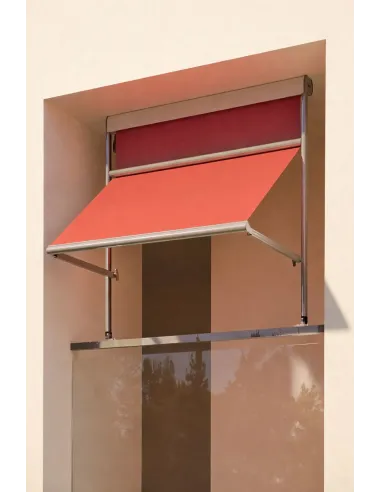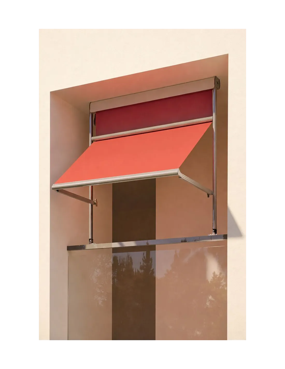 Tenda da sole a caduta libera con guide laterali e braccetti snodati. Ideale per ogni tipo di balcone e finestra.