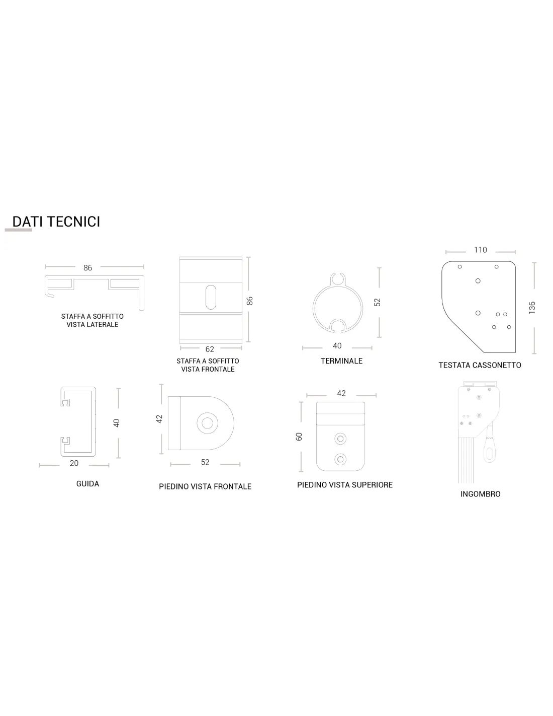 La misura dell'altezza corrisponde alla misura delle guide. Il posizionamento dei braccetti si sceglie in fase di posa in opera, si possono fissare nella posizione più comoda, la lunghezza dei braccetti è di 60cm